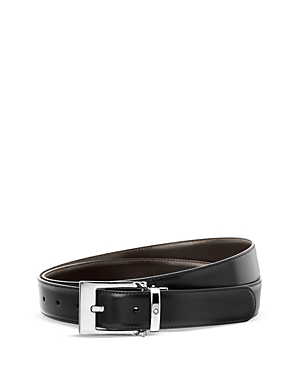 Sleek and polished, this handsome leather belt from Montblanc has a shiny, palladium-coated rectangular pin buckle with a signature emblem.